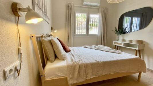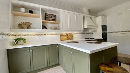 After helping our clients find and purchase their country house in Aspe, we were handed the keys of the property so we could bring this property back to life after having spent 4 years un-occupied. The layout and the structure of the house were in good condition and was ideal for a minimalistic with a touch of colonial design giving a sense of charm and space to this property.